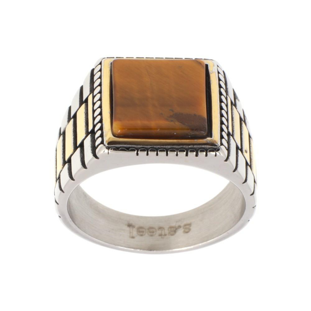 Men's Impressive manQ ring made of two-tone stainless steel with tiger's eye. An excellent piece of jewelry for the hand. A very beautiful choice for your birthday, anniversary, or any other beautiful moment!!!