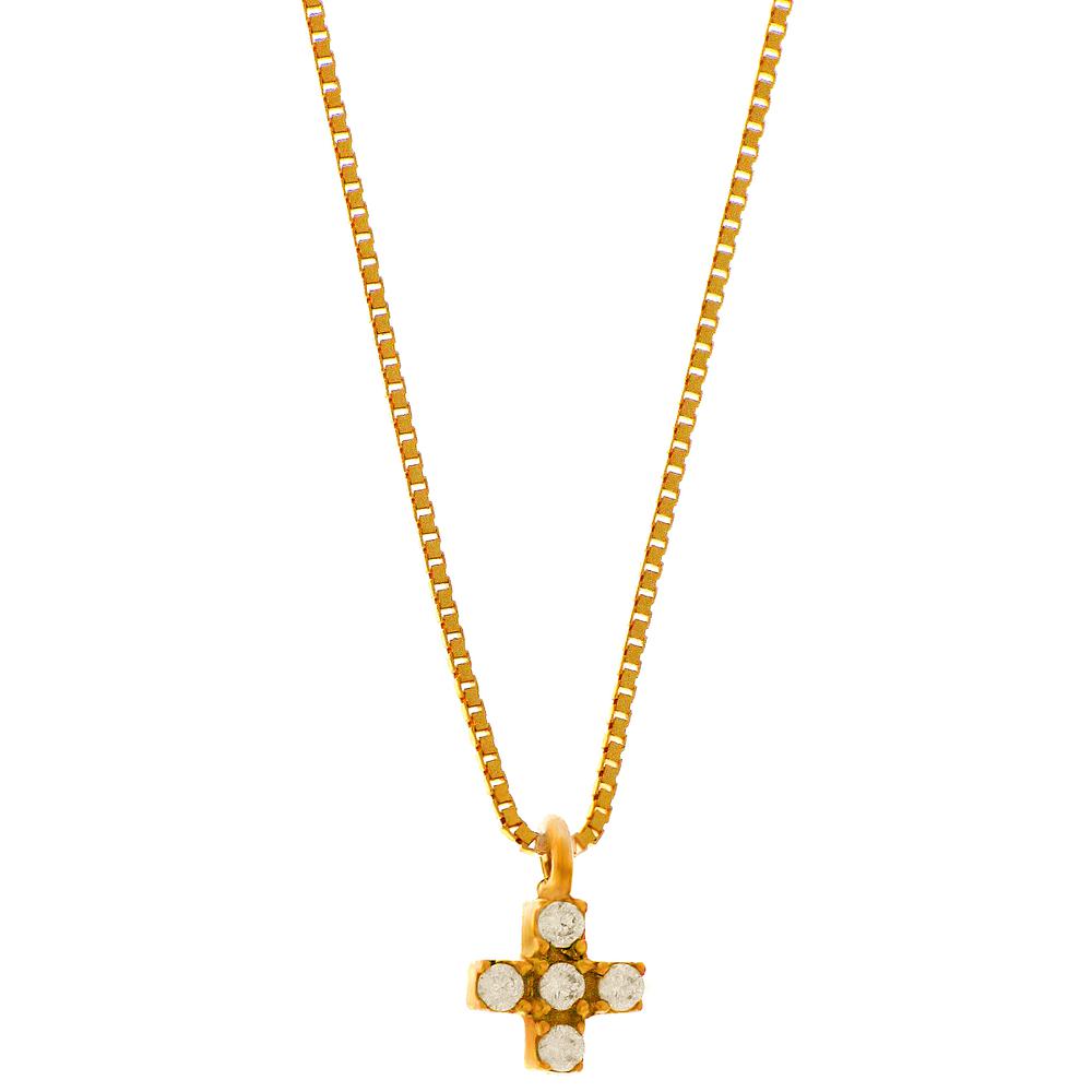 Γυναικείο Κολιέ σταυρουδάκι missQ από χρυσό Κ14 (585) σε κίτρινο χρώμα με Σίγκνιτι Star