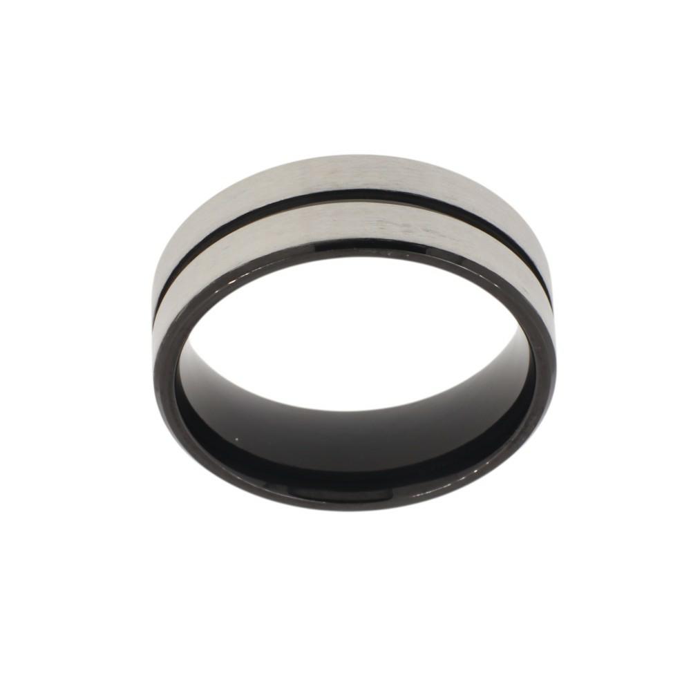 Ανδρικό Δακτυλίδι Βέρα manQ από ανοξείδωτο ατσάλι σε ασημί-μαύρο χρώμα 446475