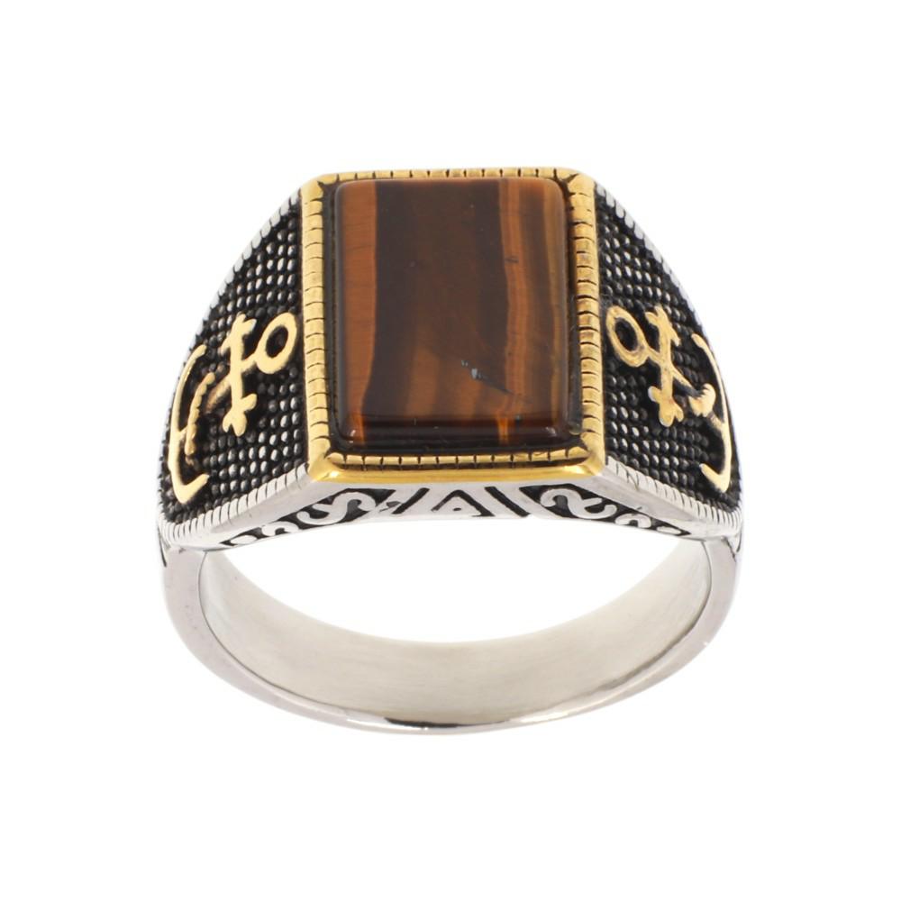 Εντυπωσιακό ανδρικό δαχτυλίδι manQ από ανθεκτικό ανοξείδωτο ατσάλι, με κομψό δίχρωμο φινίρισμα που αναδεικνύει τη δυναμική του γραμμή. Στο κέντρο δεσπόζει πέτρα μάτι τίγρης, με χαρακτηριστικές καφέ-χρυσαφένιες αντανακλάσεις, προσθέτοντας ένταση και αρρενωπό χαρακτήρα. Ιδανικό για καθημερινή χρήση αλλά και πιο ιδιαίτερες εμφανίσεις. Μια ξεχωριστή επιλογή δώρου για γενέθλια, επέτειο ή κάθε σημαντική περίσταση.
