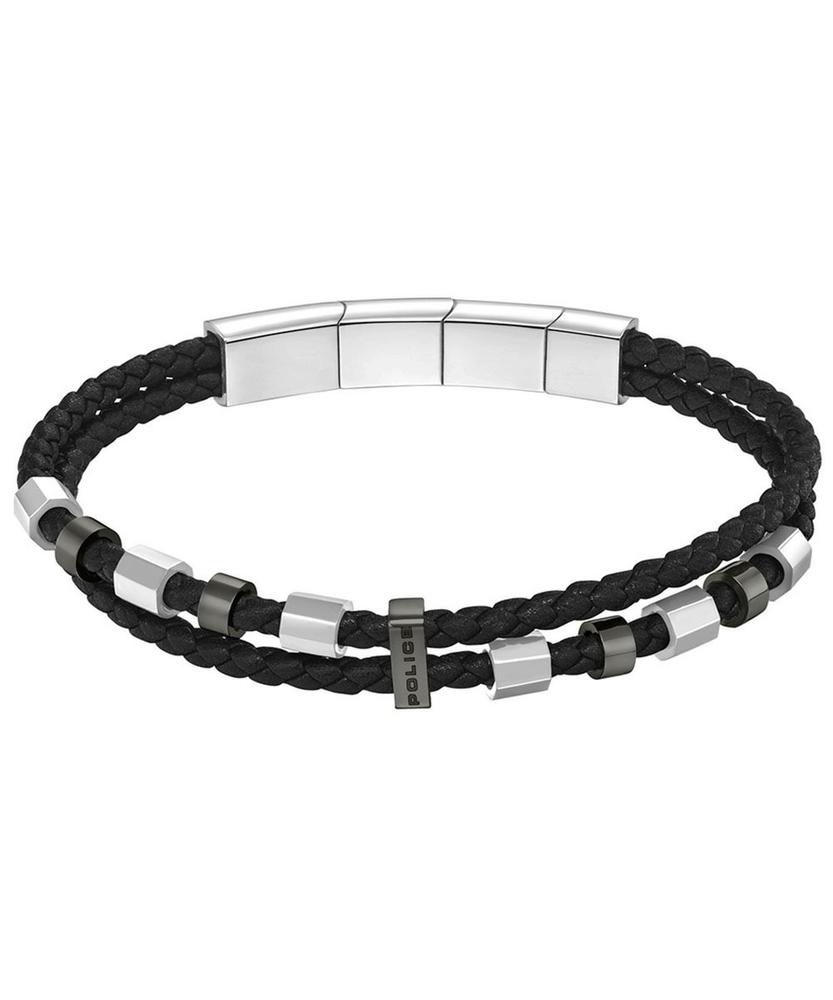 Ανδρικό Βραχιόλι Χειροπέδα δερμάτινη POLICE από ανοξείδωτο ατσάλι σε ασημί χρώμα PEAGB0035601