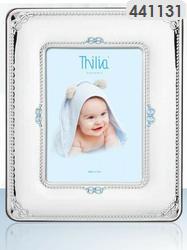 Παιδική Κορνίζα φιογκάκι babyQ από φιλμ ασημιού σε σιέλ χρώμα με Σμάλτο 441138
