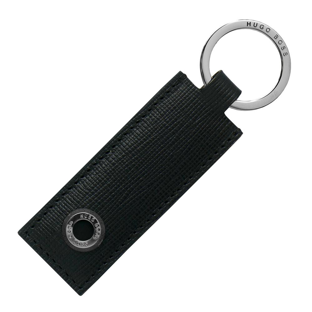 Κομψό μπρελόκ BOSS από δέρμα σε μαύρο χρώμα. Μία φανταστική επιλογή για δώρο. Προσφέρεται για τα γενέθλια,