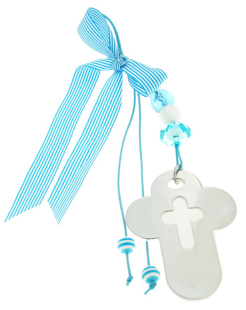 Παιδικό γούρι σταυρός babyQ για αγοράκι από ανοξείδωτο ατσάλι σε λευκό χρώμα. Ενα ιδανικό δώρο για την κούνια για το μωρό. Προσφέρεται για τη γέννηση, για τη βάπτιση, του!!!