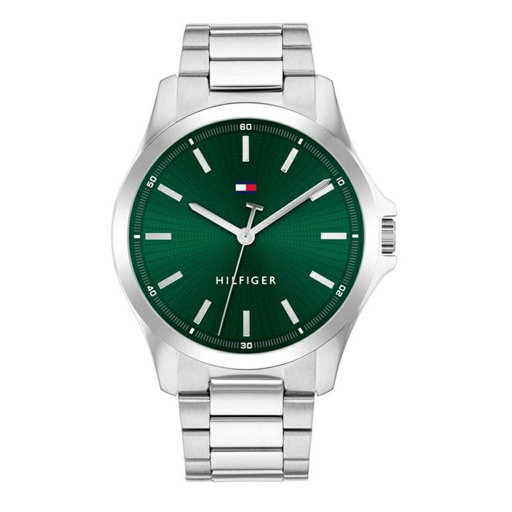 Ανδρικό αναλογικό ρολόι χειρός TOMMY HILFIGER με αξιόπιστο μηχανισμό Quartz, ιδανικό για καθημερινή χρήση και κομψές εμφανίσεις. Διαθέτει ανθεκτικό πλαίσιο και μπρασελέ από ανοξείδωτο ατσάλι σε ασημί απόχρωση, που χαρίζει διαχρονικό χαρακτήρα. Το πράσινο καντράν προσθέτει μοντέρνα, ξεχωριστή πινελιά και αναδεικνύει το στυλ. Μια εκλεπτυσμένη επιλογή δώρου για γενέθλια, επέτειο ή κάθε ιδιαίτερη περίσταση.