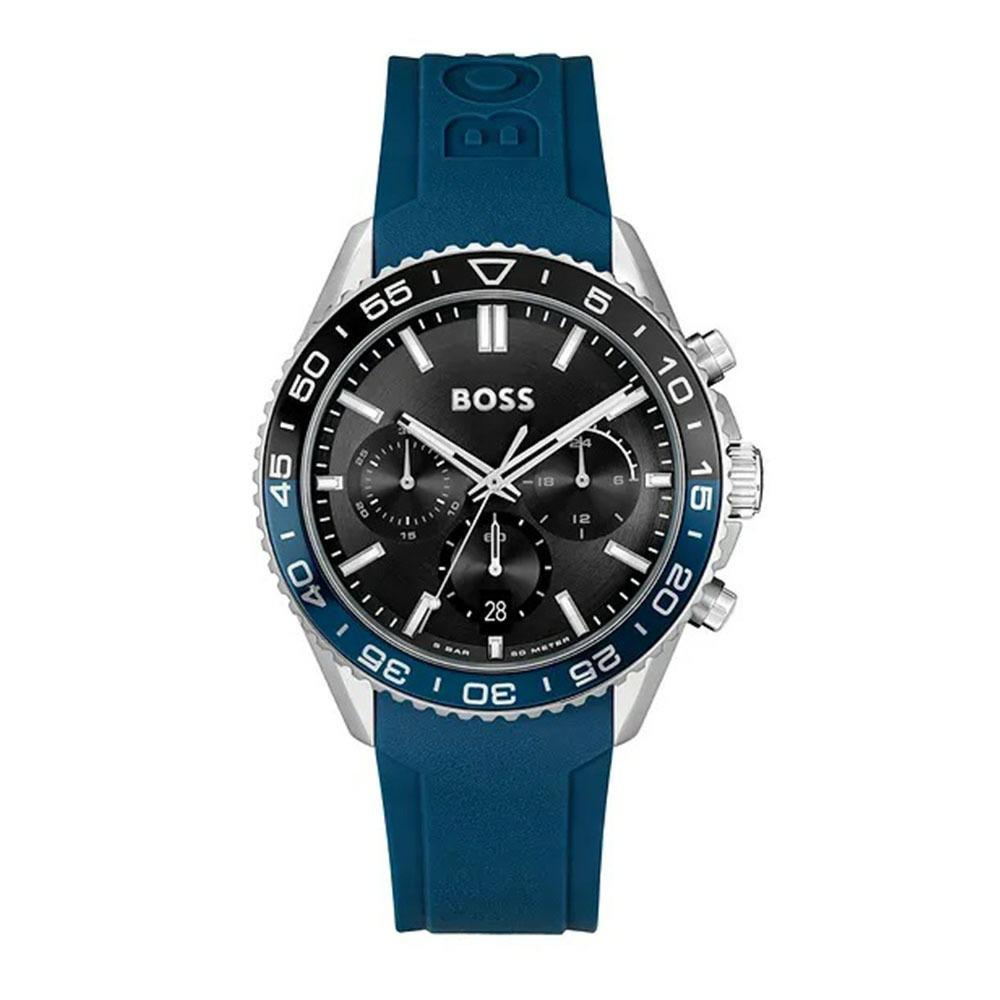 Ανδρικό αναλογικό ρολόι χεριού με μηχανισμό Quartz χρονογράφο από την HUGO BOSS, με πλαίσιο από ανοξείδωτο ατσάλι σε ασημί χρώμα. Λουράκι μπλέ από υποαλλεργική σιλικόνη και καντράν μαύρο. Ενα sport ρολόι για το χέρι. Μια όμορφη πρόταση για την επέτειο, πτυχίο ή για οποιαδήποτε άλλη όμορφη στιγμή σας!!!