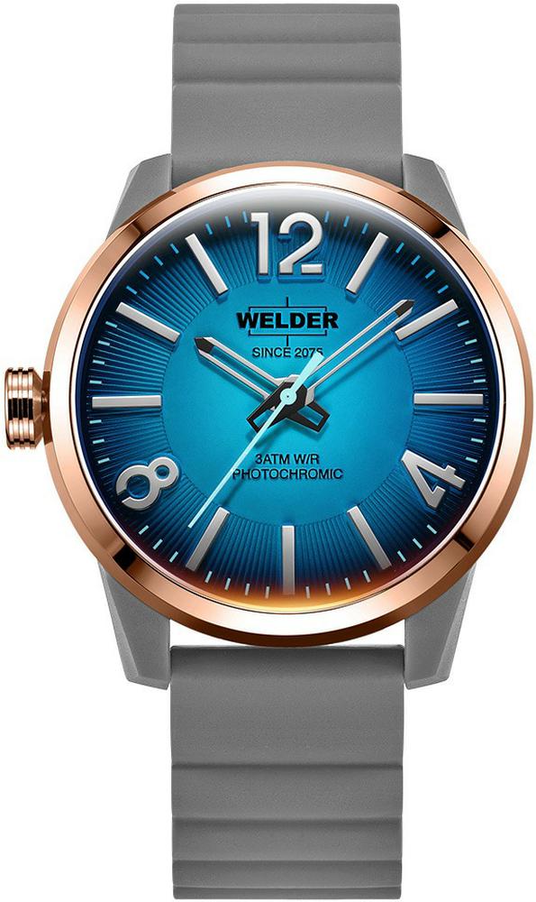 Ανδρικό αναλογικό ρολόι χεριού με μηχανισμό Quartz από την Welder, με πλαίσιο από ανοξείδωτο ατσάλι σε ροζ Gold χρώμα. Λουράκι γκρι από υποαλλεργική σιλικόνη και καντράν από Πολύχρωμο. Ενα ξεχωριστό ρολόι για το χέρι. Μια όμορφη πρόταση για τα γενέθλια, ή για οποιαδήποτε άλλη όμορφη στιγμή σας!!!