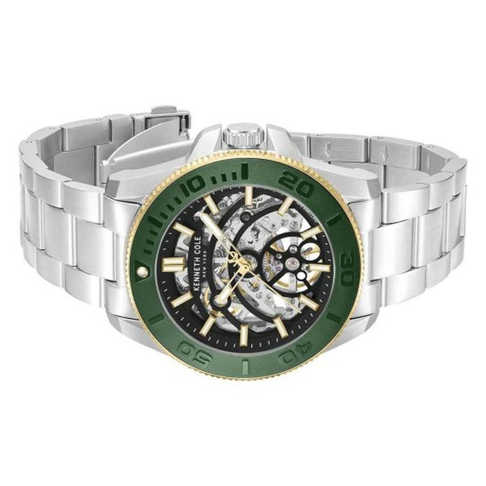 Ανδρικό μηχανικό ρολόι χεριού από την KENNETH COLE, με πλαίσιο και μπρασελλέ από ανοξείδωτο ατσάλι σε ασημί-χρυσό χρώμα και καντράν πράσινο Πράσινο. Ενα μοντέρνο ρολόι για το χέρι. Μια όμορφη πρόταση για τα γενέθλια, για την επέτειο, ή για οποιαδήποτε άλλη όμορφη στιγμή σας!!!