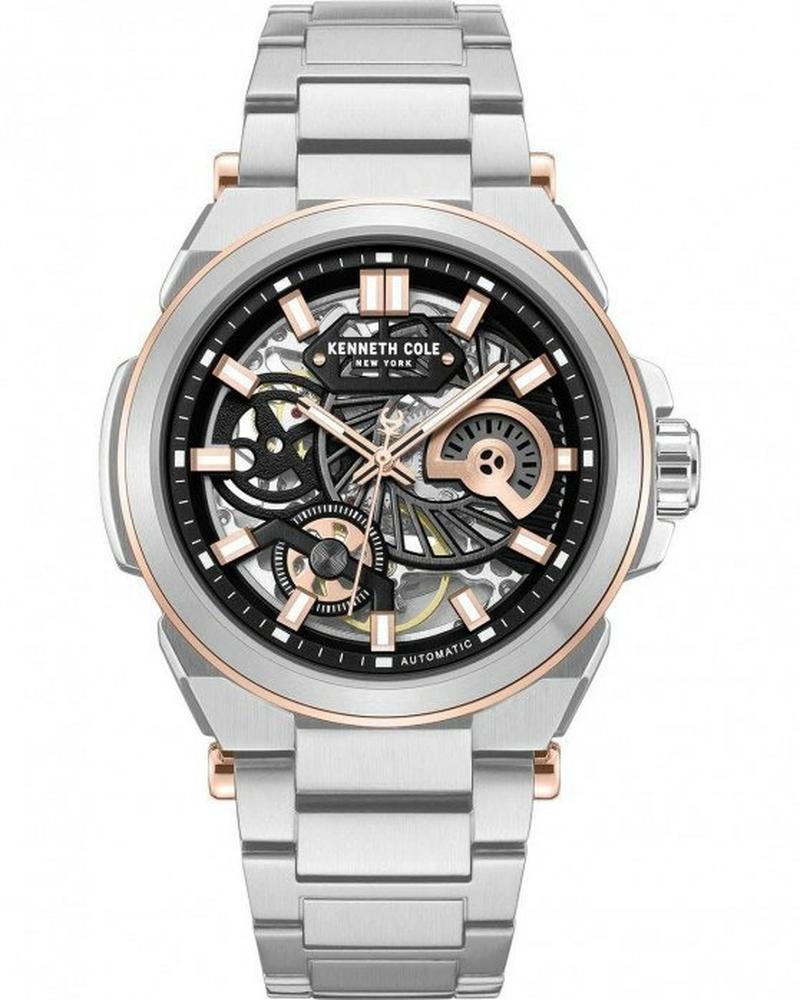 Ανδρικό μηχανικό ρολόι χεριού από την KENNETH COLE, με πλαίσιο και μπρασελλέ από ανοξείδωτο ατσάλι σε ασημί χρώμα και καντράν skeleton SKELETON. Ενα ξεχωριστό ρολόι για το χέρι. Προσφέρεται για τα γενέθλια, πτυχίο ή για οποιαδήποτε άλλη όμορφη στιγμή σας!!!