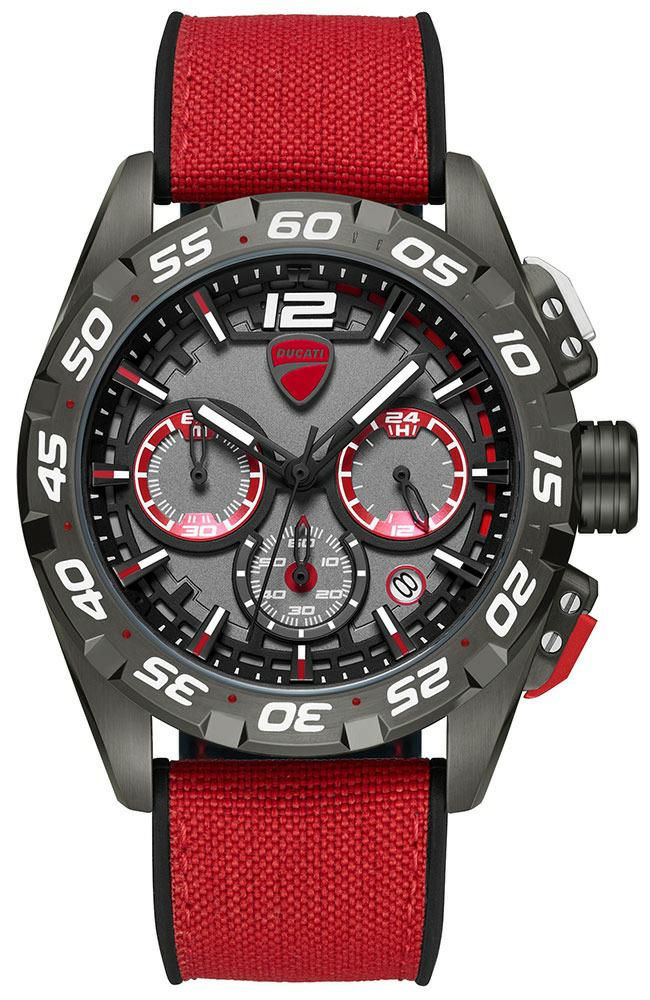 Ανδρικό αναλογικό ρολόι χεριού με μηχανισμό Quartz χρονογράφο DUCATI, με πλαίσιο από ανοξείδωτο ατσάλι σε gun metal χρώμα. Λουράκι κοκκινο από καουτσούκ και καντράν Ανθρακί. Ενα sport ρολόι για το χέρι. Προσφέρεται για τα γενέθλια, πτυχίο ή για οποιαδήποτε άλλη όμορφη στιγμή σας!!!