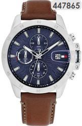 Ανδρικό αναλογικό ρολόι χεριού με μηχανισμό Quartz από την TOMMY HILFIGER, με πλαίσιο από ανοξείδωτο ατσάλι σε ασημί-χρυσό χρώμα. Λουράκι καφέ από γνήσιο δέρμα και καντράν Ασημί. Ενα ξεχωριστό ρολόι για το χέρι. Μια όμορφη πρόταση για τα γενέθλια,ή για οποιαδήποτε άλλη όμορφη στιγμή σας!!!