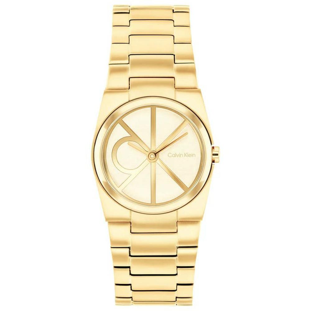 Γυναικείο αναλογικό ρολόι Calvin Klein με αξιόπιστο μηχανισμό Quartz, που συνδυάζει κομψότητα και μοντέρνο ύφος. Διαθέτει πλαίσιο και μπρασελέ από ανοξείδωτο ατσάλι σε λαμπερό χρυσό τόνο, ενώ το χρυσαφί καντράν ολοκληρώνει το ενιαίο, πολυτελές look.Φοριέται σαν κόσμημα και αναδεικνύει κάθε εμφάνιση. Ιδανική επιλογή για γάμο ή αρραβώνα, γενέθλια, δώρο στην κουμπάρα ή σε κάθε ξεχωριστή περίσταση.