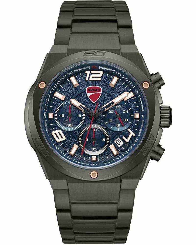 Ανδρικό αναλογικό ρολόι DUCATI με μηχανισμό Quartz και λειτουργία χρονογράφου, που συνδυάζει ακρίβεια και δυναμικό στυλ. Η κάσα 40mm και το μπρασελέ είναι κατασκευασμένα από ανοξείδωτο ατσάλι σε κομψό ανθρακί τόνο, προσφέροντας αντοχή και μοντέρνα εμφάνιση. Το καντράν σε απόχρωση Blue-Black δίνει ιδιαίτερο βάθος και sporty χαρακτήρα. Ιδανική επιλογή για δώρο σε γενέθλια, πτυχίο ή μια ξεχωριστή περίσταση.